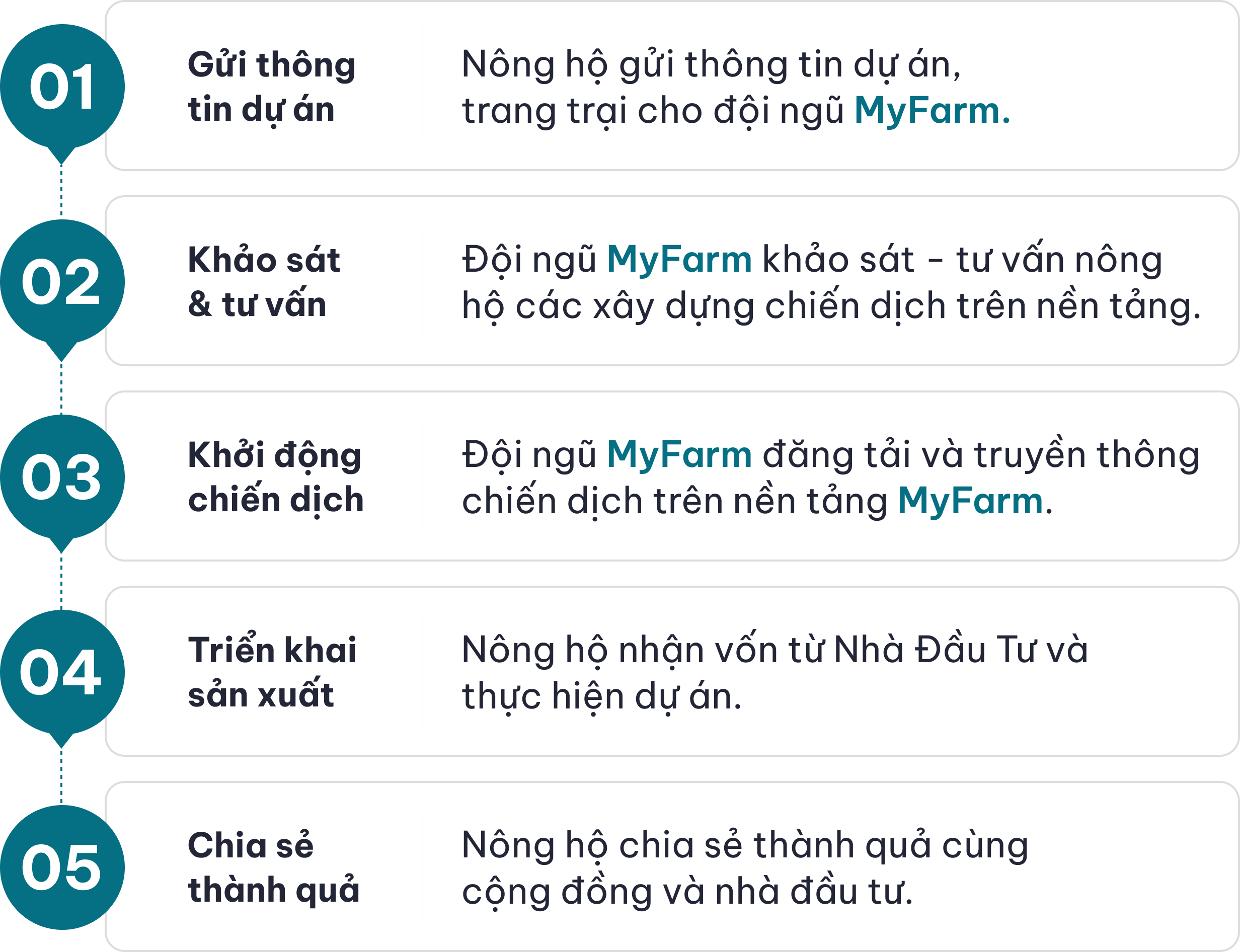 Myfarm là nền tảng gọi vốn cộng đồng trong nông nghiệp, nơi nông dân và nhà đầu tư cùng nhau kiến tạo những dự án nông nghiệp bền vững.